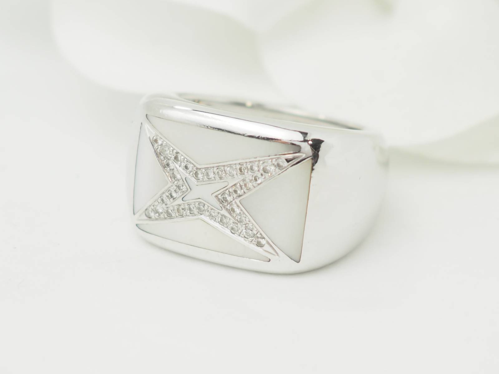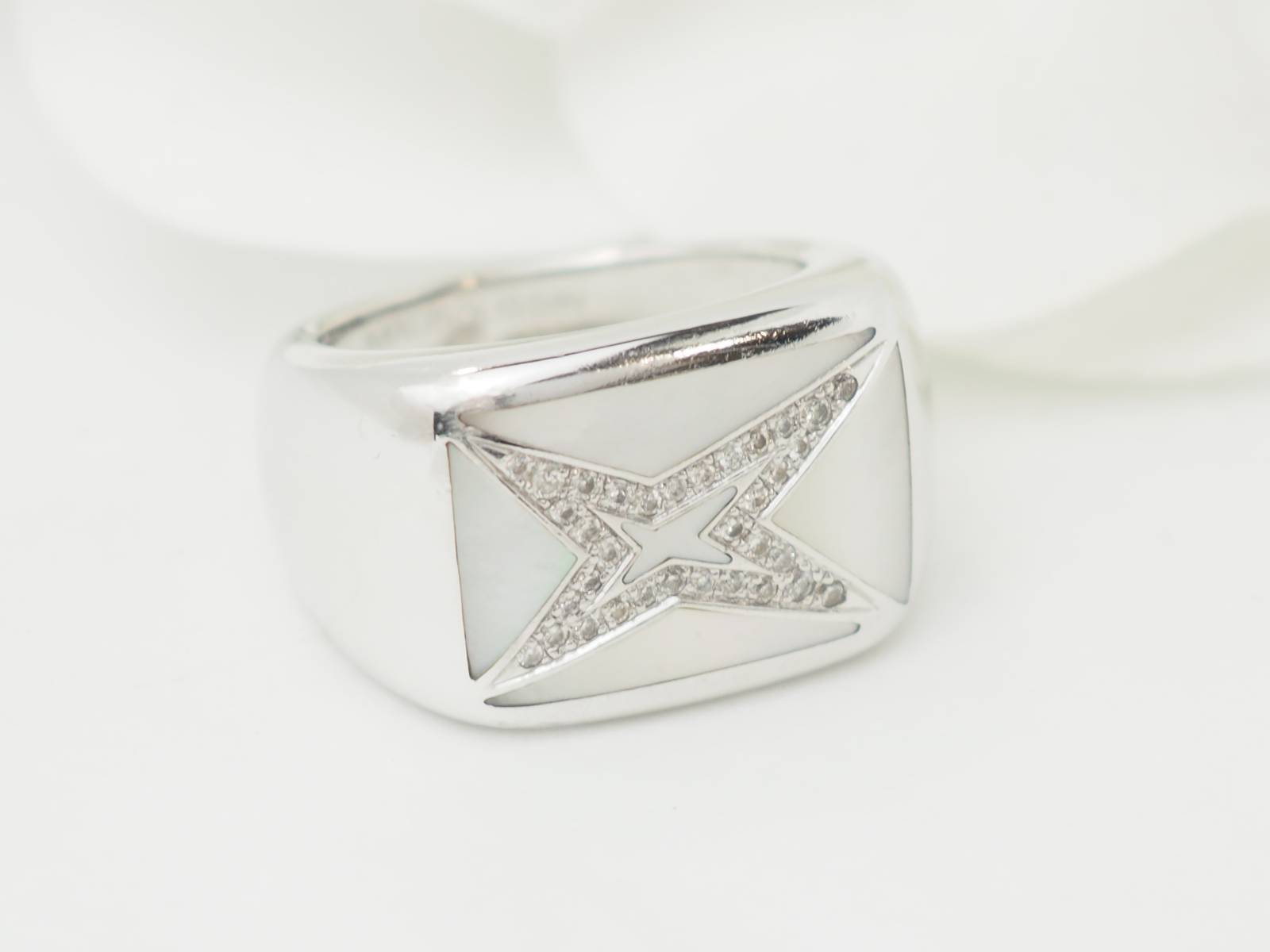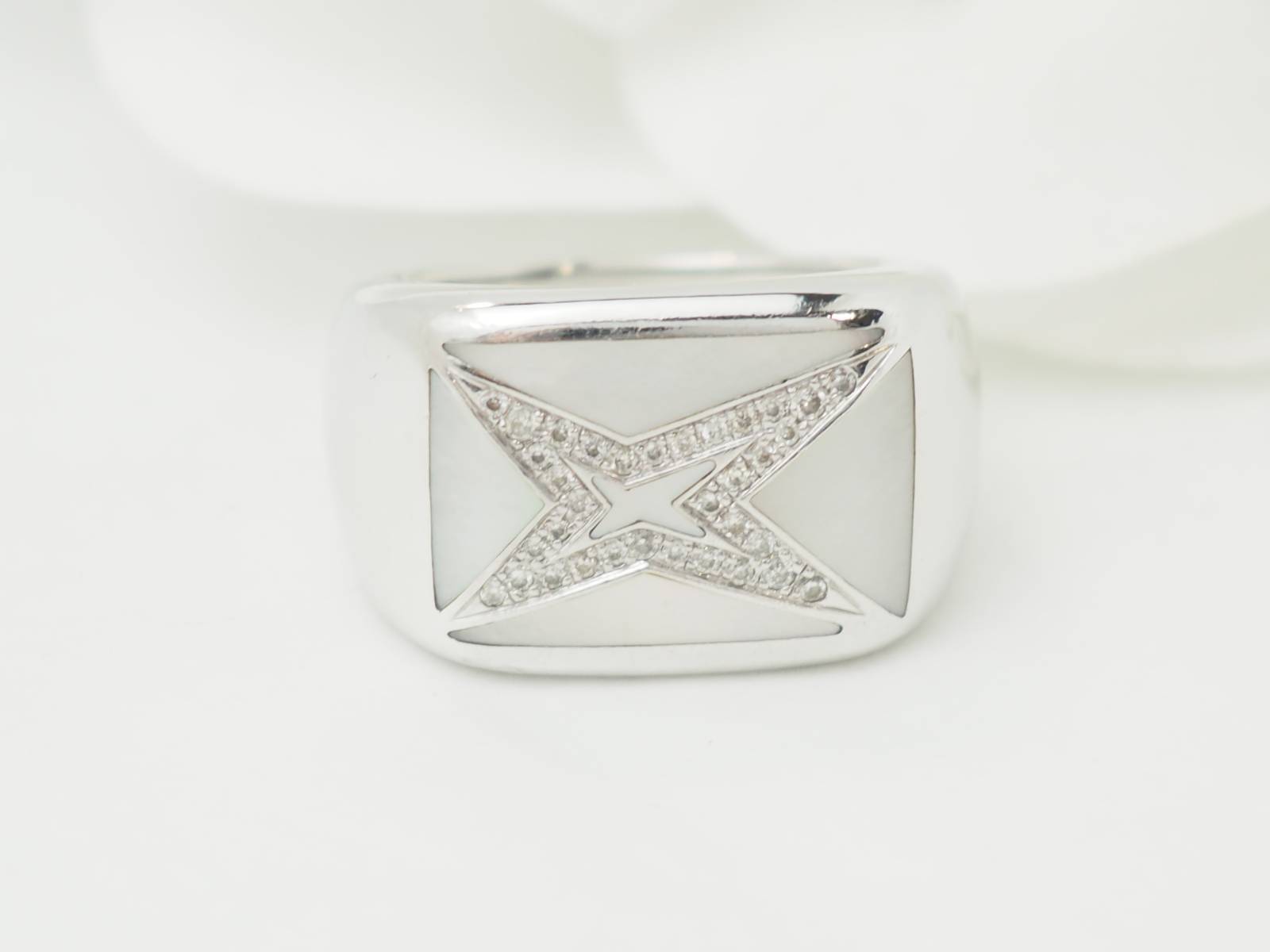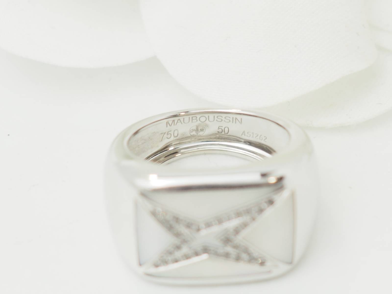Bague Mauboussin "Grande vie" en or blanc, nacre et diamants ;