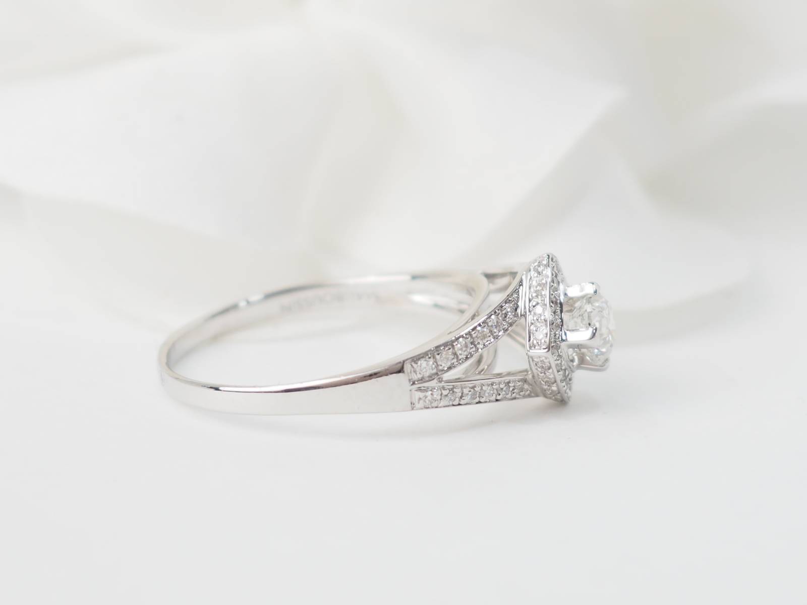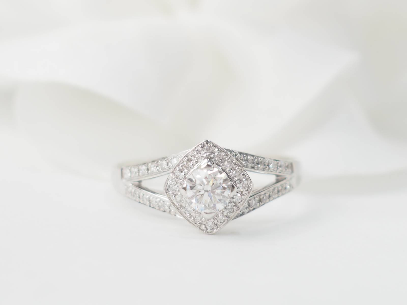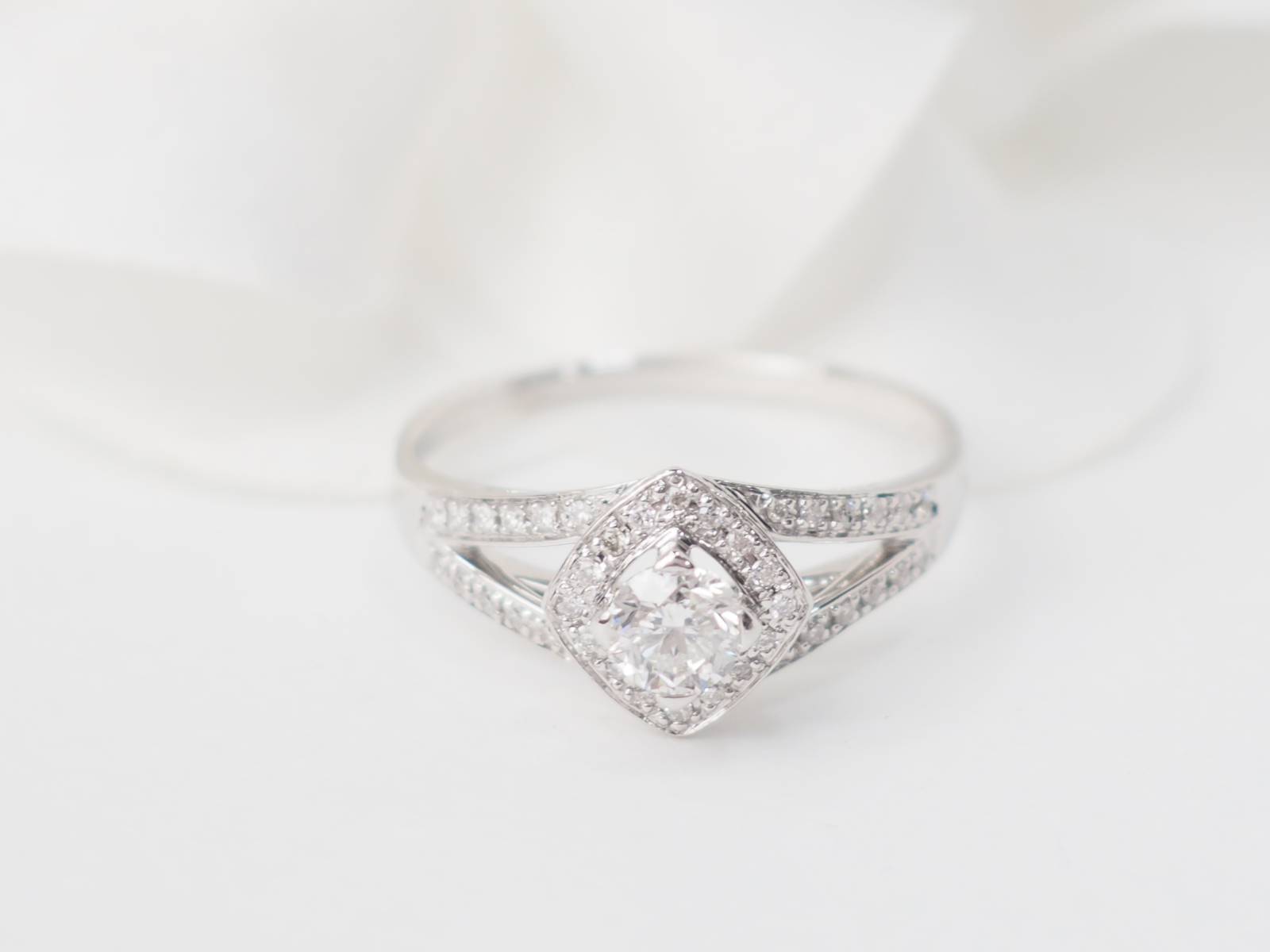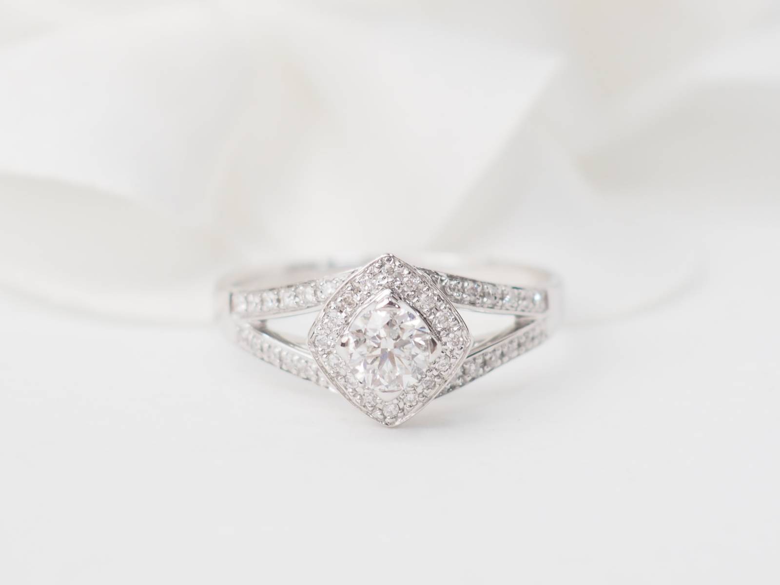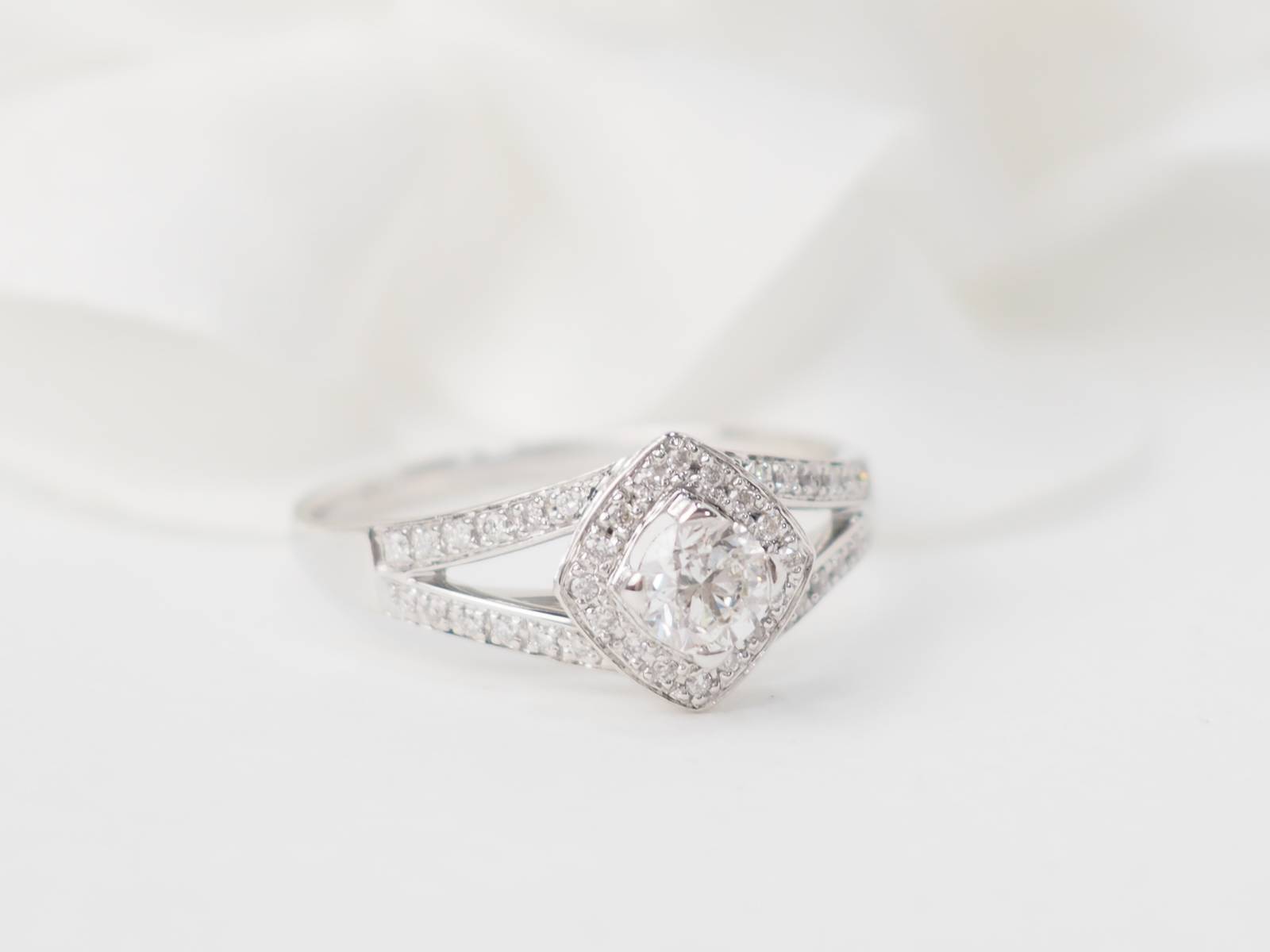 - Centré d'un diamants taille brillant de 0.23 ct ;