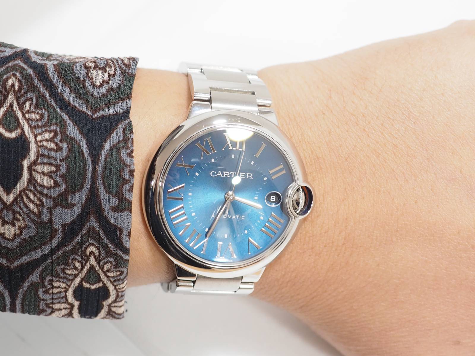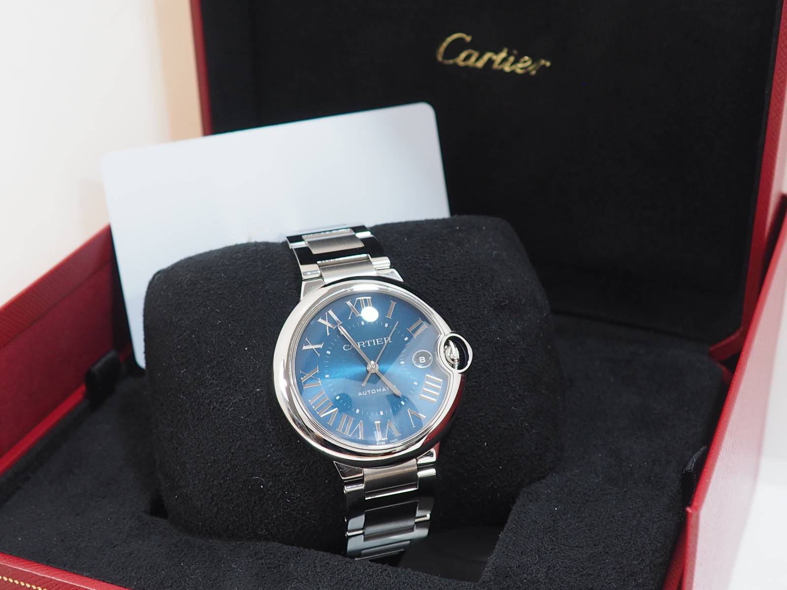 Parmi nos différents modèles, vous trouverez cette montre Cartier Ballon bleu d'occasion à Marseille.